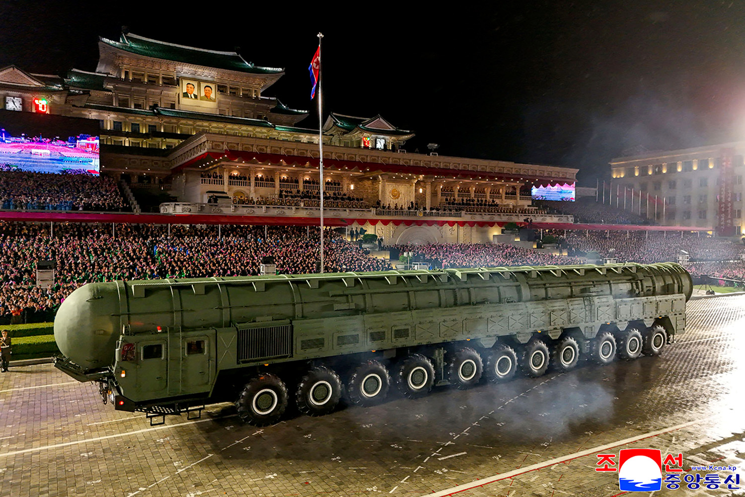 ในขบวนพาเหรดทางทหาร เกาหลีเหนือได้จัดแสดง ‘ขีปนาวุธข้ามทวีปฮวาซอง-20 ที่ทันสมัยที่สุด’ ซึ่งสำนักข่าว KCNA ของรัฐบาลยกย่องว่าเป็น ‘ระบบอาวุธนิวเคลียร์เชิงยุทธศาสตร์ที่แข็งแกร่งที่สุดของประเทศ’
