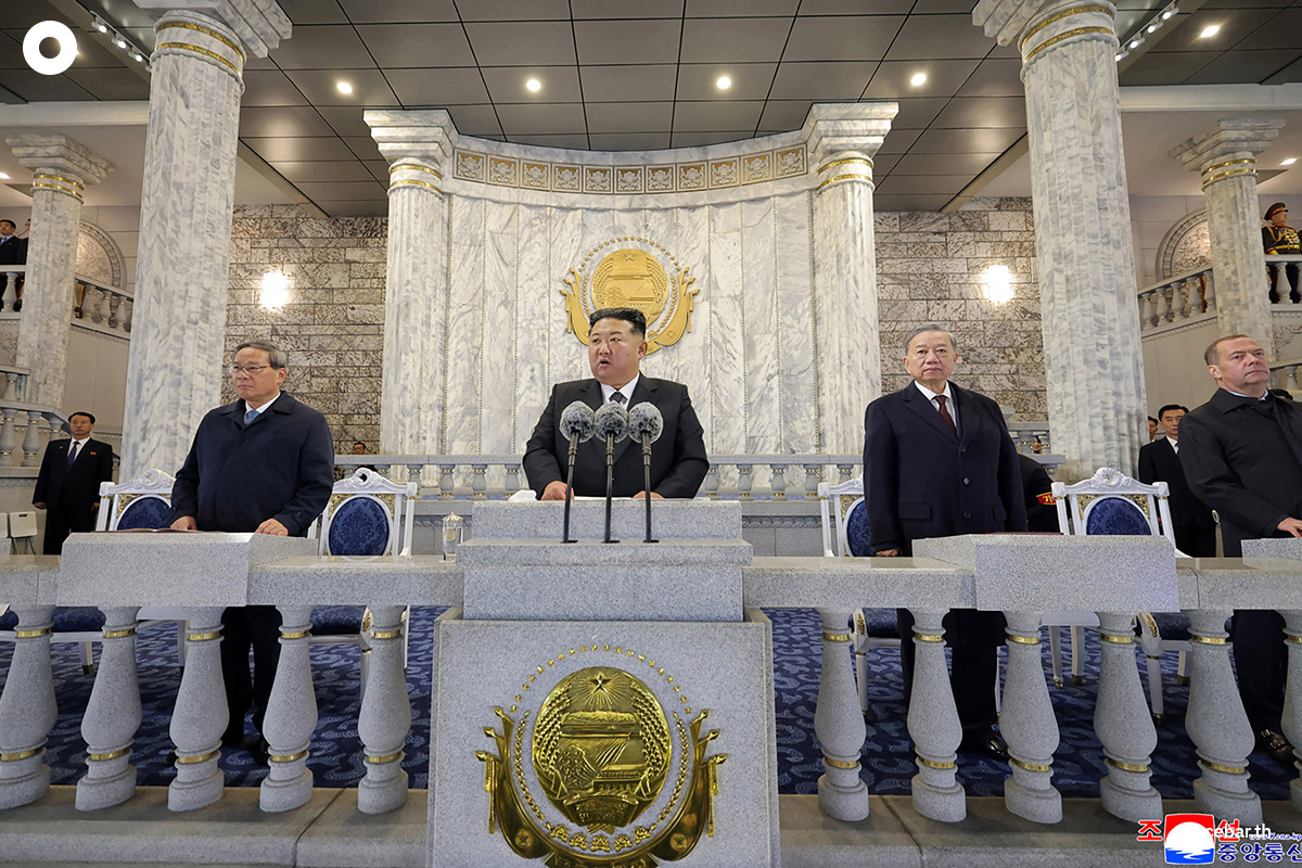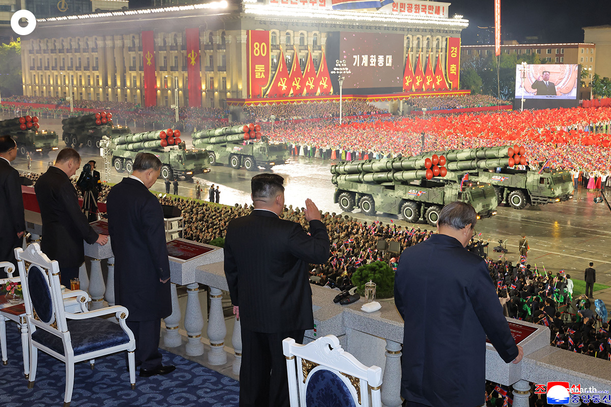 คิม จองอึน ผู้นำเกาหลีเหนือ เข้าร่วมพิธีสวนสนามทางทหารขนาดใหญ่ ซึ่งจัดแสดงโชว์ขีปนาวุธข้ามทวีป (ICBM) รุ่นใหม่ ต่อหน้าแขกผู้มีเกียรตินานาชาติที่มาเยือน นับเป็นการเฉลิมฉลองครบรอบ 80 ปีการก่อตั้งพรรคแรงงานของรัฐบาลเมื่อช่วงค่ำวันศุกร์ (10 ต.ค.) ที่ผ่านมา