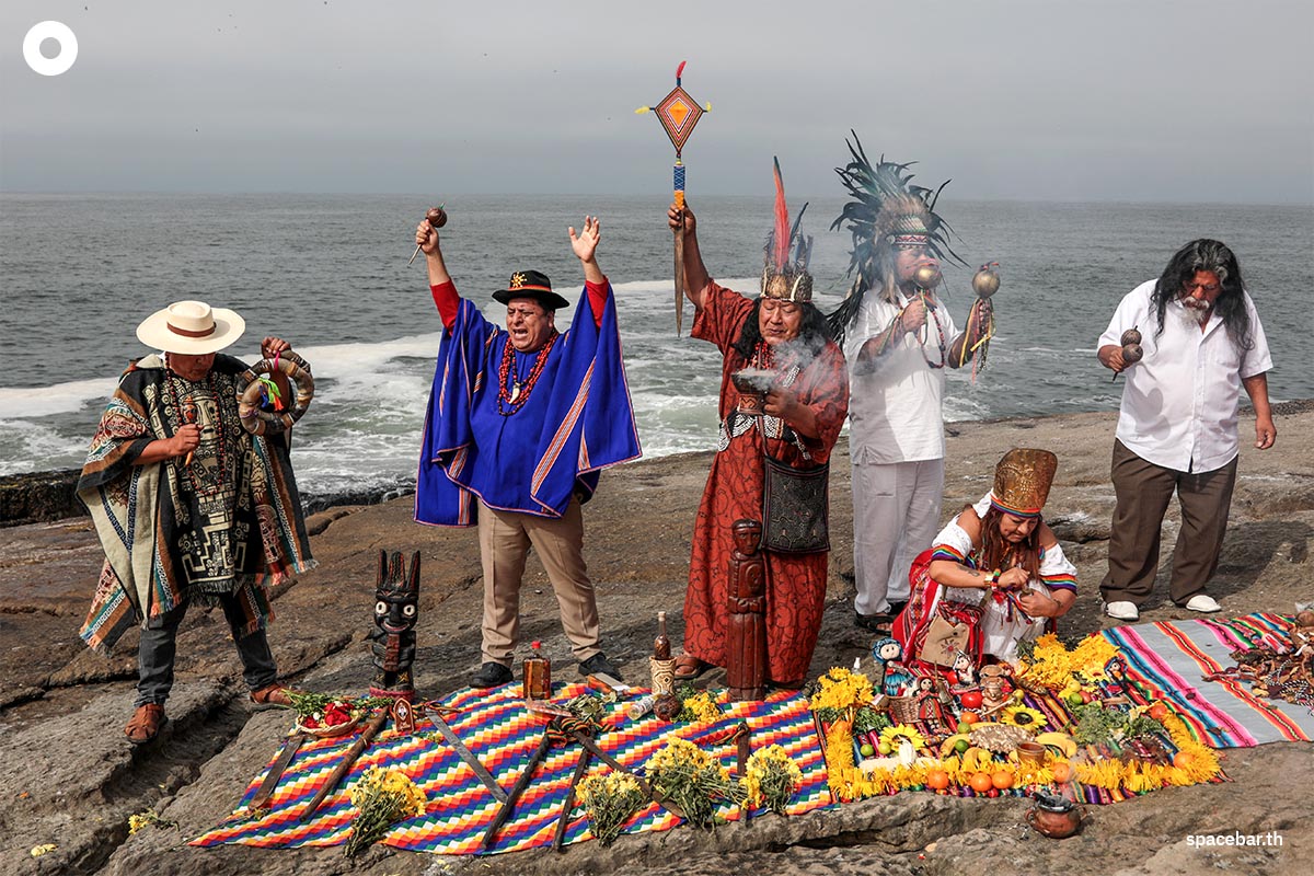 เหล่าหมอผีในเปรูรวมตัวกันเมื่อวันจันทร์ (29 ธ.ค.) ที่ผ่านมา ณ ริมทะเลในเขตมิราฟลอเรส กรุงลิมา เมืองหลวงของเปรู เพื่อประกอบพิธีกรรมประจำปีในการทำนายสิ่งที่จะเกิดขึ้นในปีถัดไป